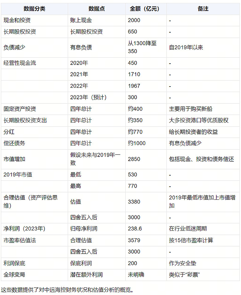 剩下资产负债每年能获得保底30亿码头营业利润和保底100亿海运净利润。